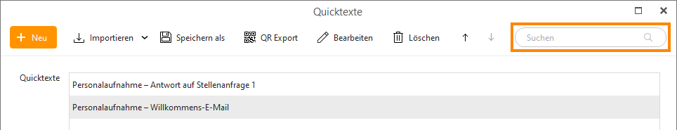 Die QuickText-Verwaltung ist jetzt noch komfortabler: Wir haben eine Suchfunktion in dem QuickText Bereich hinzugefügt. Sie finden diese unter Einstellungen > E-Mail > QuickText oder über „Verwalten” im Nachrichtenfenster.