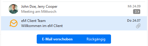 Haben Sie eine Nachricht versehentlich in den falschen Ordner verschoben? Auf vielfachen Wunsch können Verschiebeaktionen nun über die Popup-Benachrichtigung in der Nachrichtenliste oder mit der Tastenkombination Strg + Z rückgängig gemacht werden.