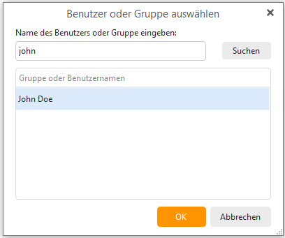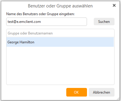 Mit „Hinzufügen” können Sie den Zugriff an Benutzer oder Gruppen delegieren, indem Sie deren E-Mail-Adressen eingeben.