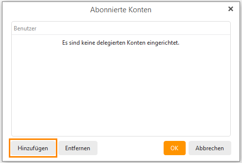 Ein delegiertes Konto hinzufügen, auf das Sie bereits Zugriff haben