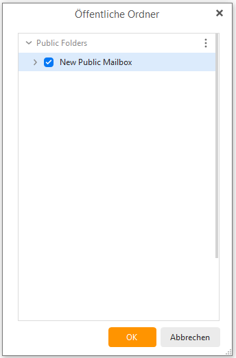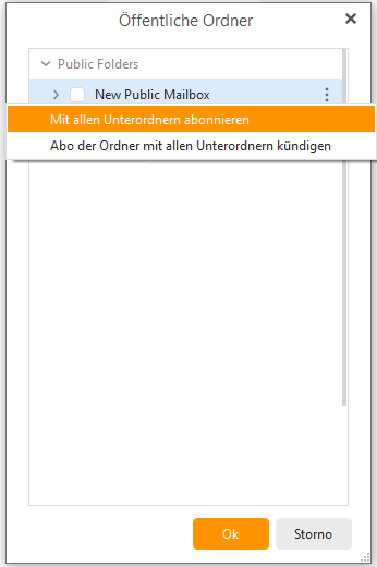 Um öffentliche Ordner zu abonnieren, klicken Sie auf die Schaltfläche „Bearbeiten…“. Es erscheint ein Popup-Fenster, in dem Sie die gewünschten Ordner durch Aktivieren der entsprechenden Kontrollkästchen auswählen können.