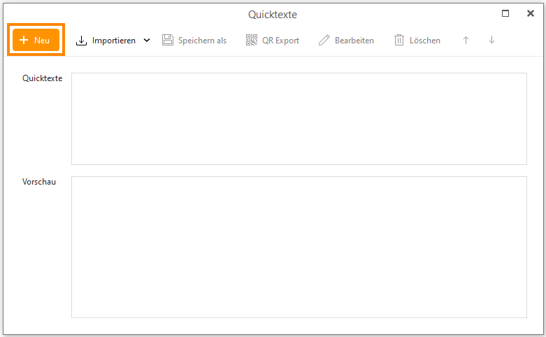 Klicken Sie auf +Neu, um einen neuen QuickText zu erstellen: