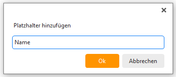 Um einen Platzhalter in einem neuen QuickText einzufügen, nutzen Sie die 3-Punkte-Menüschaltfläche in der Symbolleiste und wählen Platzhalter einfügen oder klicken mit der rechten Maustaste in das QuickText-Fenster und wählen Einfügen > Platzhalter. Es öffnet sich ein Popup-Fenster, in dem Sie den gewünschten Platzhalter erstellen können.